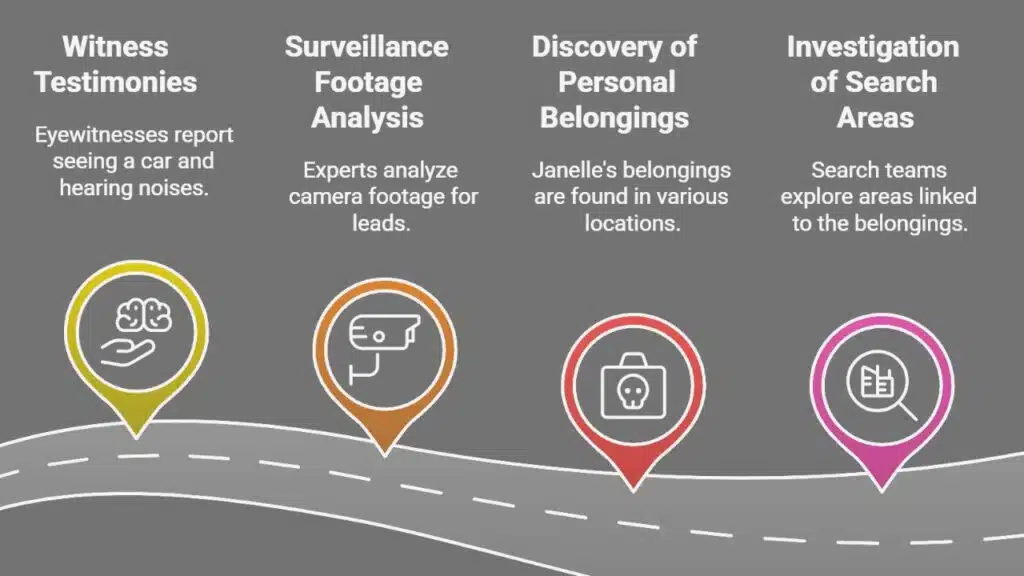 The police recorded everything these witnesses said. They looked for matches between their testimonies and other evidence. This process helped them piece together what might have happened to Janelle that day.