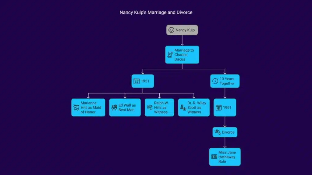 Hey there, wanna know about Nancy Kulp’s love life? She tied the knot with Charles Malcolm Dacus in 1951, and I’ve got the scoop for you!