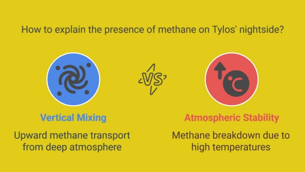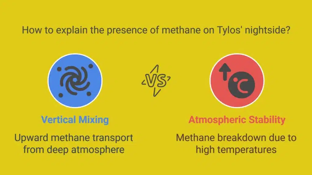 The most likely explanation is a phenomenon known as vertical mixing. Powerful updrafts deep inside the atmosphere may be pushing methane-rich air upward to cooler layers, allowing it to be detected before it breaks down. This kind of extreme vertical circulation is rare in known planetary atmospheres and suggests that Tylos is not just hot, but also highly dynamic.