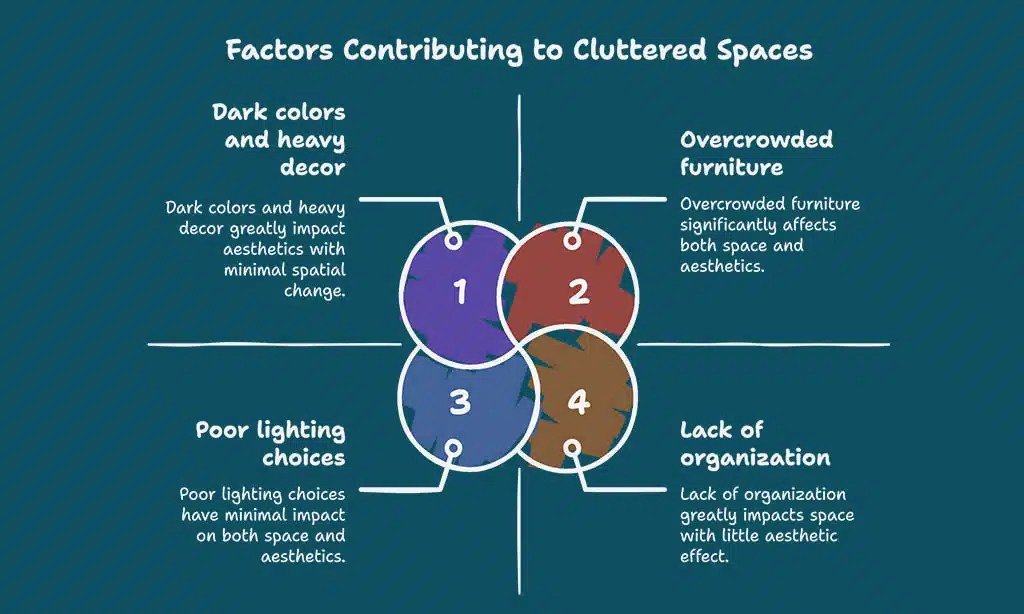 Several factors contribute to the feeling of a cramped room. Here are some common culprits: