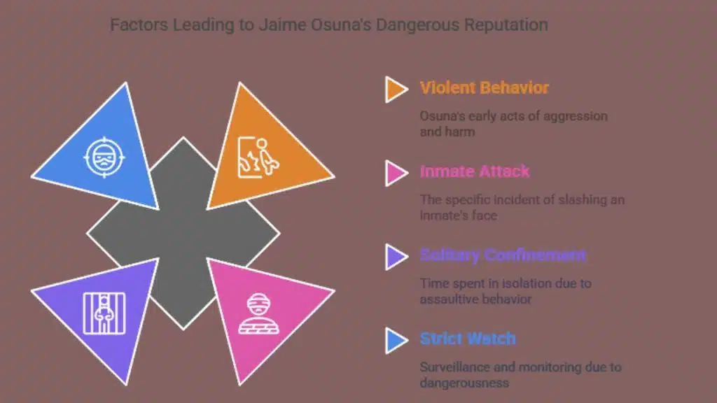 Jaime Osuna showed violent behavior early on. In Kern County, he attacked an inmate, slashing his face and leaving him with 67 stitches. Authorities considered him a dangerous threat.