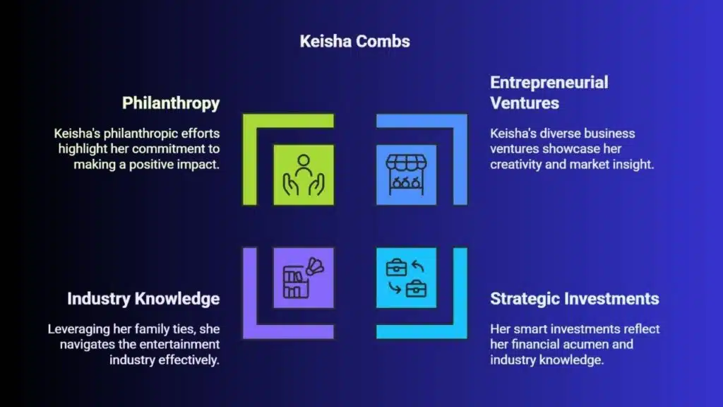 Her involvement in various fields suggests she holds a net worth that reflects her hard work and entrepreneurial spirit. Being related to Sean “Diddy” Combs likely offers advantages, but Keisha has carved out her path.