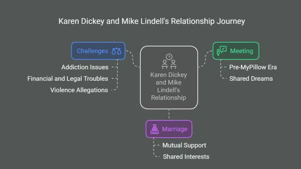 Mike Lindell and Karen Dickey’s path crossed in a simple setting. They met through friends. This was before Mike became the MyPillow CEO. Their meeting led to dates. Soon, they found themselves deep in conversation about their futures together.