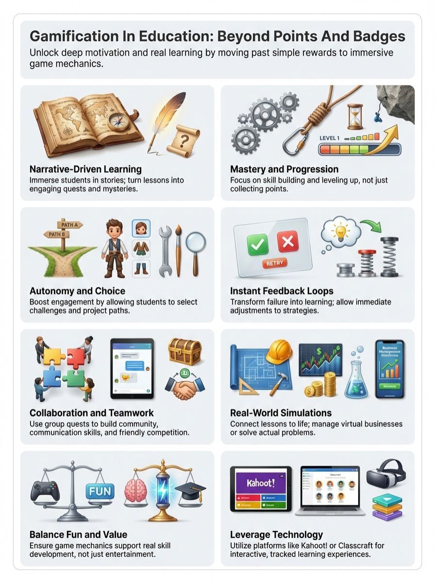 Gamification in education works best when we move past simple points and badges. We need deeper strategies like stories, choices, and feedback to spark real interest. These game-like tools are easy for any teacher to use and can fit into most classrooms with little hassle.