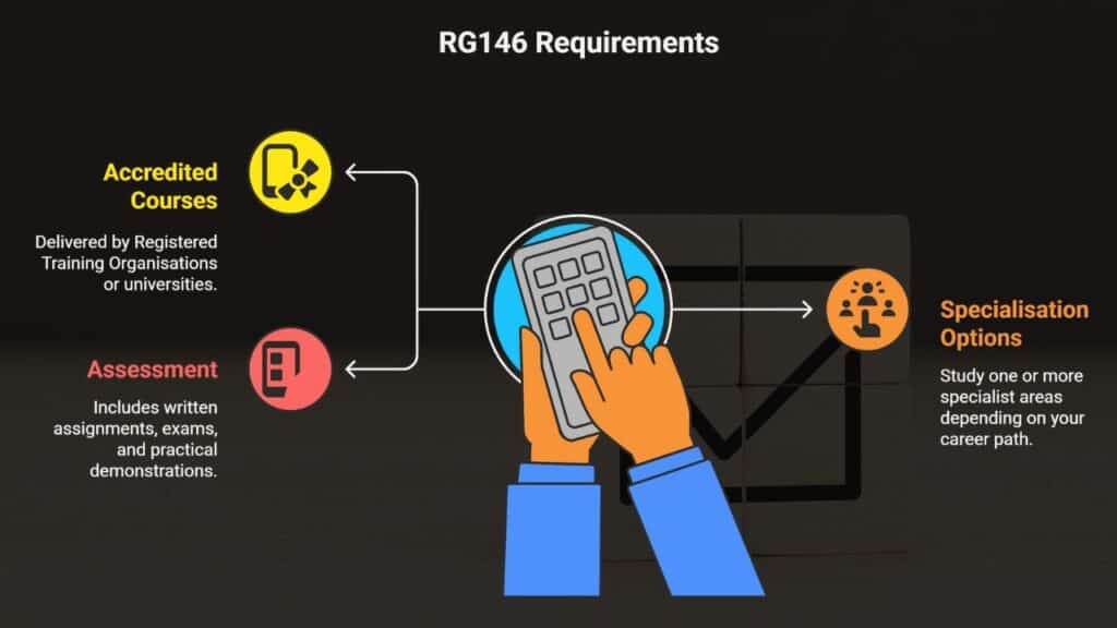 Meeting RG146 requirements typically involves completing an ASIC-approved training program.