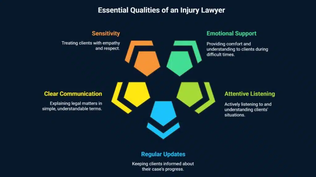 A good injury lawyer provides emotional support as well as legal counsel. They need to listen attentively and understand your situation. The lawyer should keep you updated on your case regularly and explain legal matters in simple terms. An attorney who treats clients with sensitivity and compassion will be better equipped to advocate effectively on your behalf.