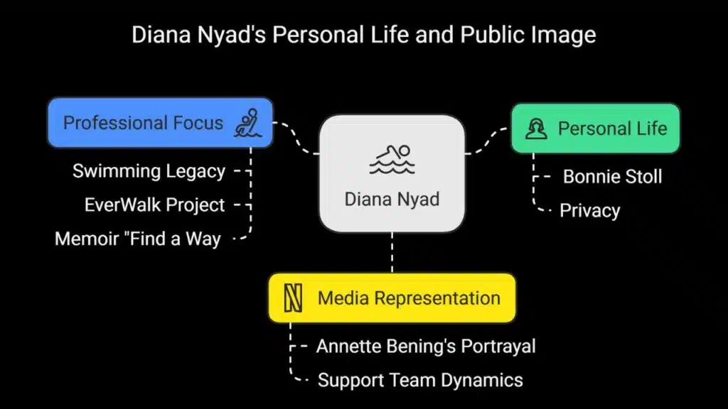 Many fans wonder about Diana Nyad’s personal life after watching her story in the Netflix film. The famous swimmer keeps some parts of her life private. Public records don’t clearly state if Diana is married.