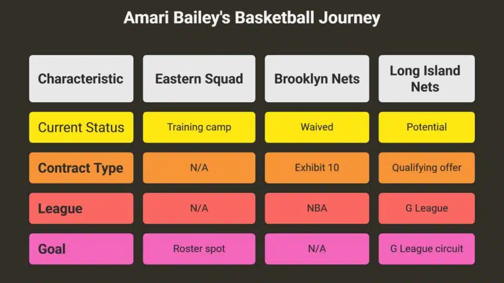 Amari Bailey signed an Exhibit 10 deal with the Brooklyn Nets on September 21, 2024. The pact placed him in training camp and the summer league. Michael Scotto and USA Today praised the move.