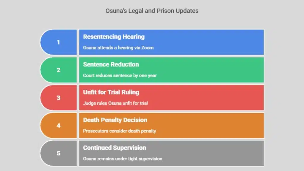 On December 13, 2023, Osuna attended a resentencing hearing through Zoom. The court reduced one year from his sentence based on a law change in 2020. This change impacted enhancements tied to previous sentences.