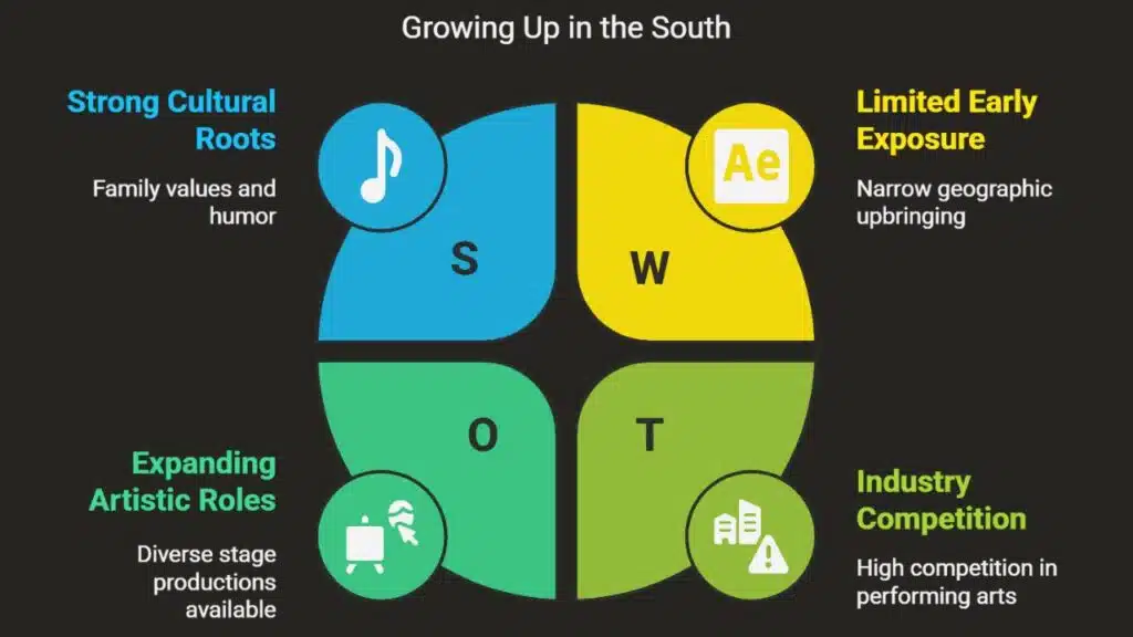 Her Alabama upbringing filled her with stories and songs that she later brought to the stage. This background helped her become the first African American female ringmaster at UniverSoul Circus.