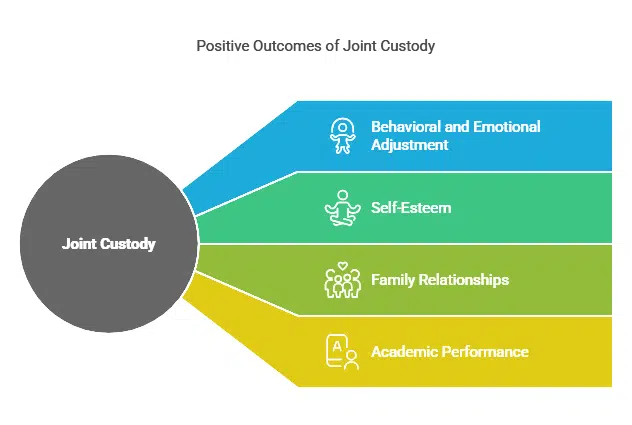 Research suggests that joint custody arrangements can have positive effects on children of divorce. A meta-analysis of 54 studies found that children in joint physical custody arrangements had better outcomes in areas such as: