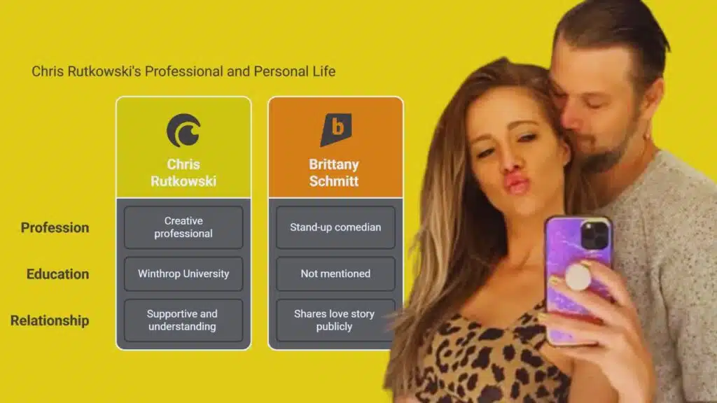 Brittany Schmitt’s husband is Chris Rutkowski, a talented graphic design professional who works in visual communication. He has built his career in Los Angeles, supporting the stand-up comedian through her personal growth journey.