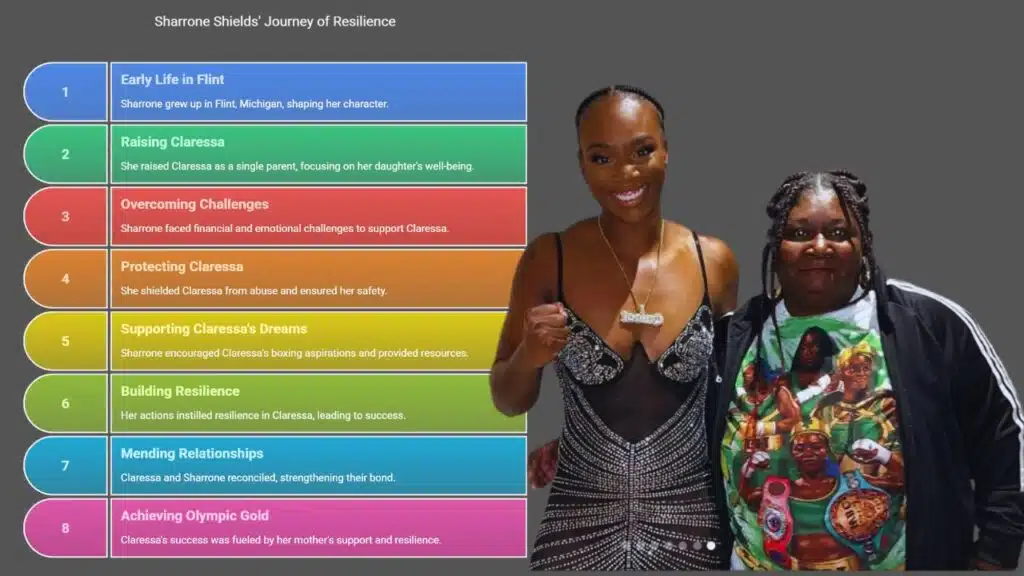 - Sharrone Shields grew up in Flint, Michigan, and as a single mom she worked odd jobs, bought her daughter’s first gloves, and drove nine-year-old Claressa to the gym every day.