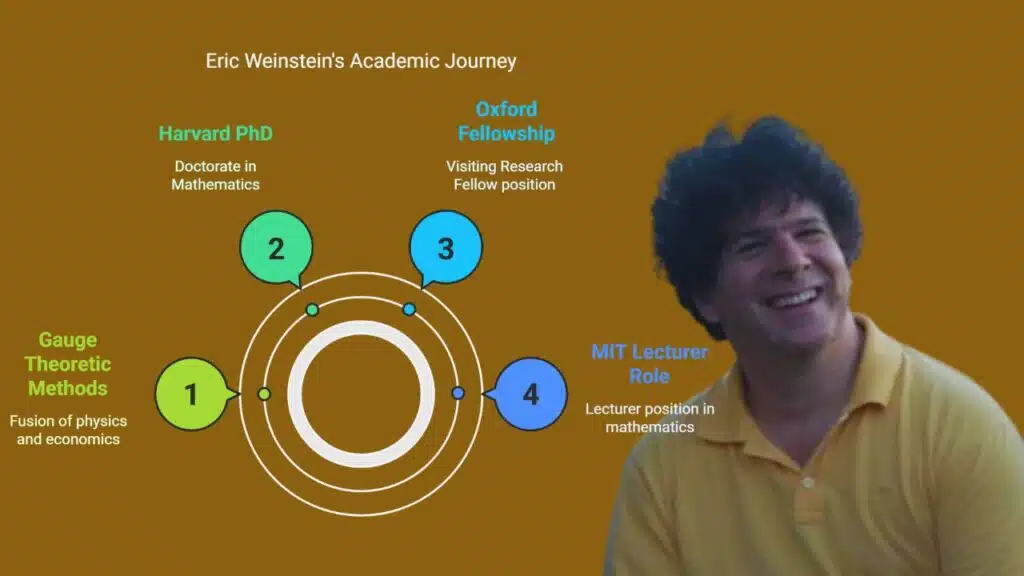 - Eric Weinstein earned his PhD in Mathematics at Harvard University in 1992, studied self-dual Yang-Mills equations and Riemannian geometry, and served as a Visiting Research Fellow at Oxford’s Mathematical Institute.