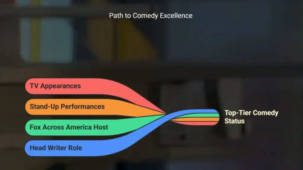His move into A‑list comedy circuits cemented his status among top‑tier performers. National comedy service executives tapped him for guest spots on America’s Newsroom, Watters World and The Ingraham Angle.