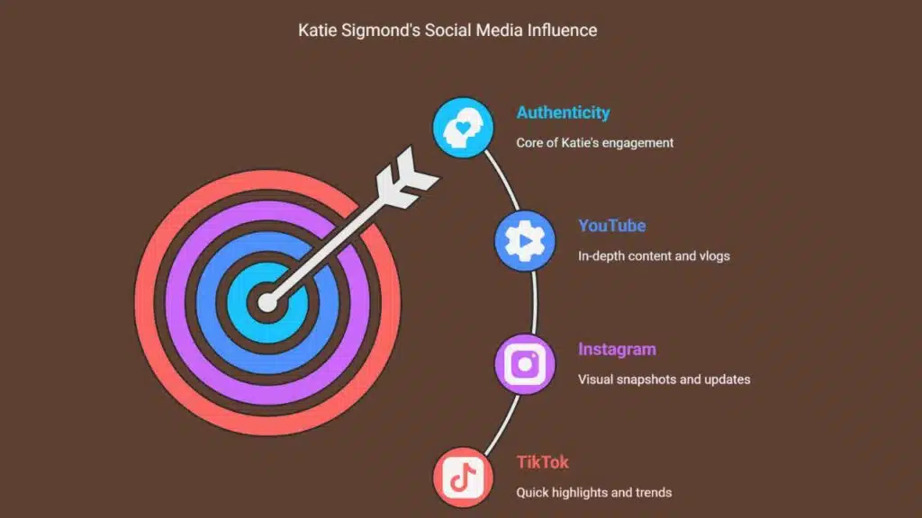 Katie Sigmond connects well with her fans online. She shares her life on YouTube and talks to them through emails. Her TikTok engagement rate is 1.03%, showing strong interaction. On Instagram, the engagement is lower at 0.01%.
