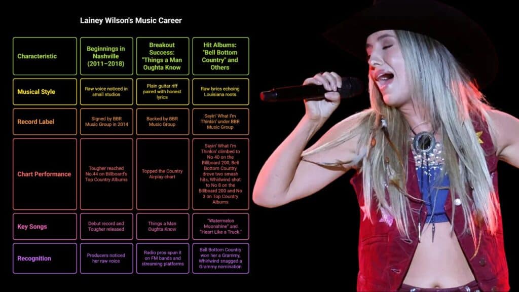 In February 2024, Lainey Wilson took home the Best Country Album trophy at the Grammy Awards for Bell Bottom Country. The record rolled out on bbr music group, and its raw vocals and twangy guitar struck a chord across country music airwaves.