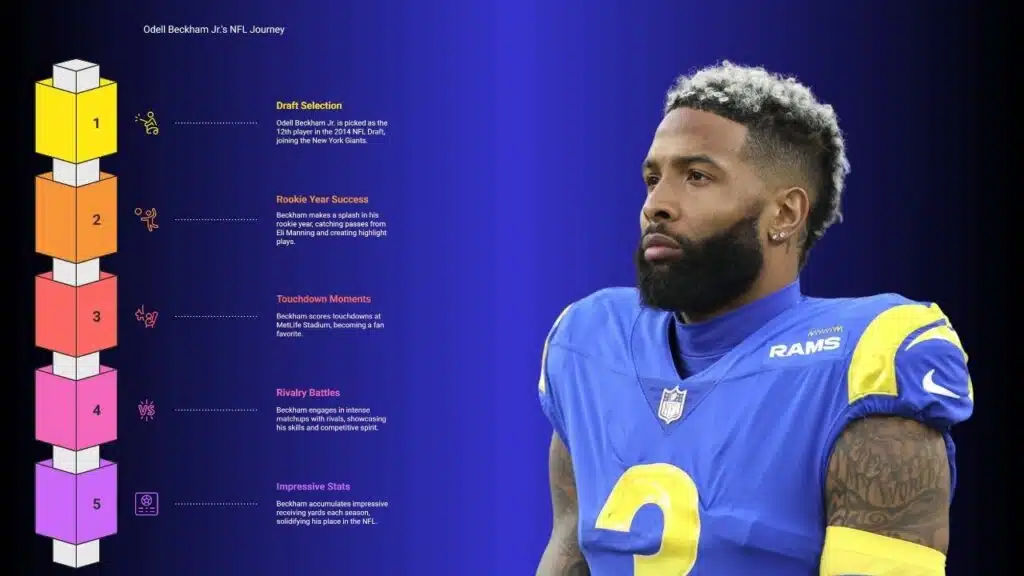 Odell Beckham Jr. has played for some big teams, catching passes from stars like Eli Manning and Lamar Jackson. He’s scored touchdowns in front of roaring crowds and faced off against rivals such as the New England Patriots and the Baltimore Ravens, always bringing excitement to the football field.
