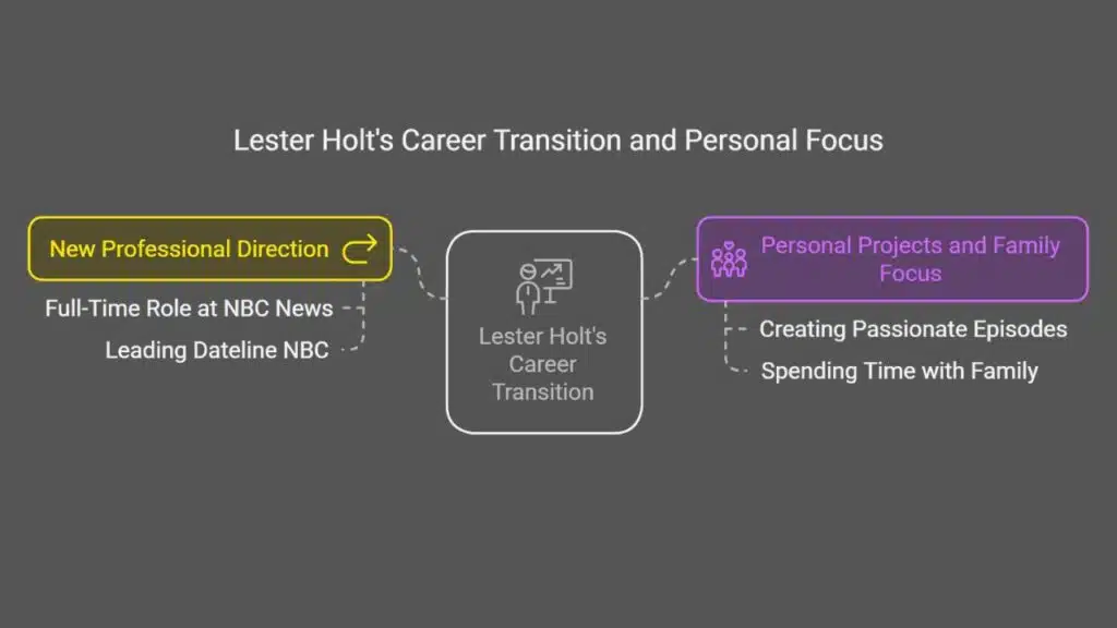 The veteran news anchor Lester Holt plans to craft episodes on topics he loves. He turns his focus to personal projects and family life. His choice comes after high-profile departures from NBC nightly news and signals a broader trend among news anchors.