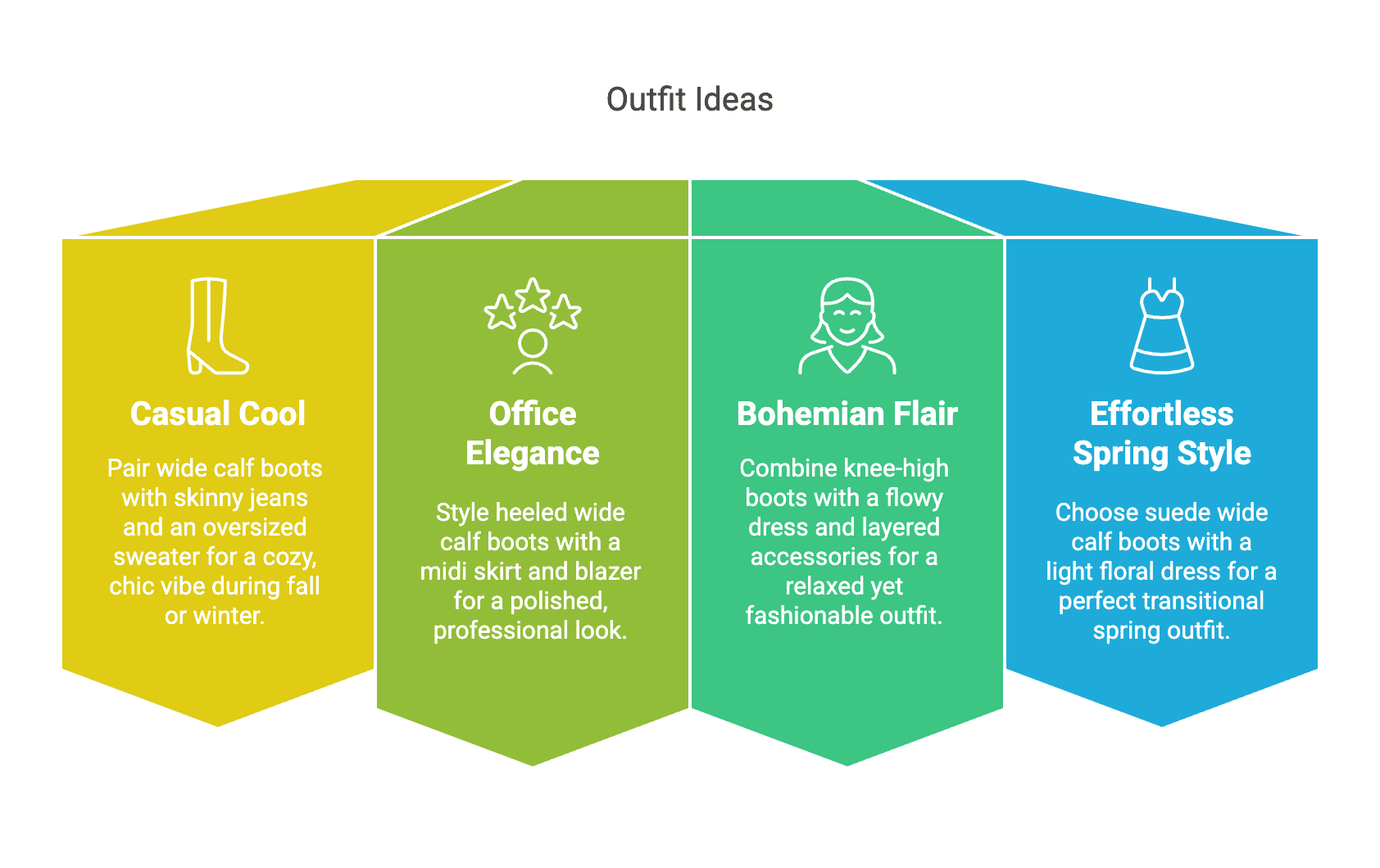 - Office elegance: Style heeled wide calf boots with a midi skirt and blazer for a polished, professional look.